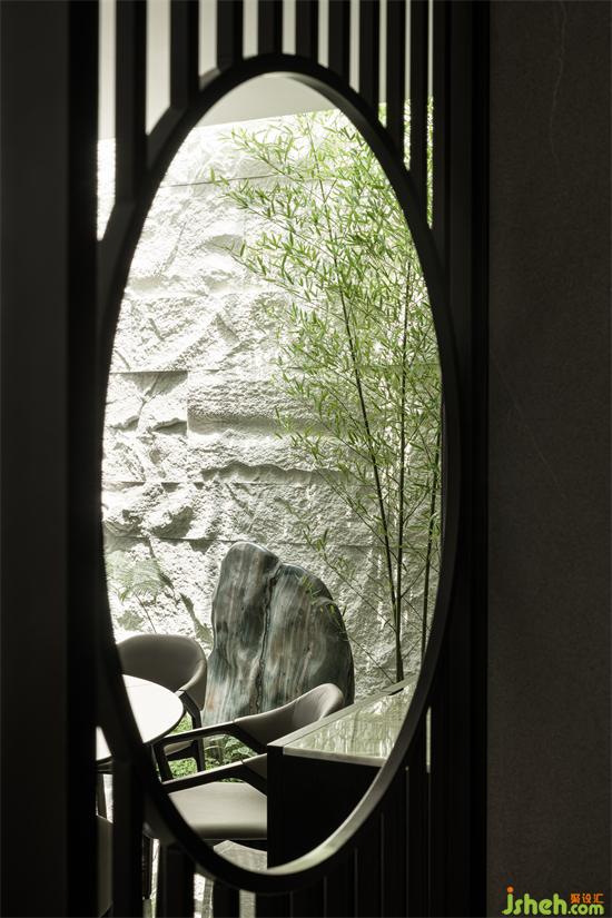 苏东坡曾说“宁可食无肉,不可居无竹”,天井设置绿植造景,主餐厅在丛丛绿竹的掩映下,满目清新,充满生机。
