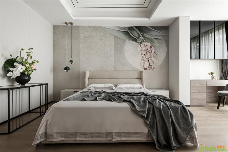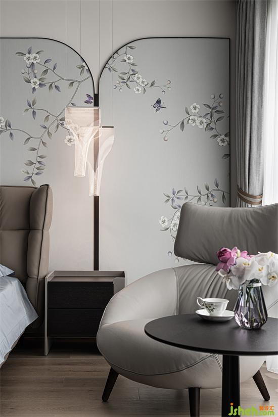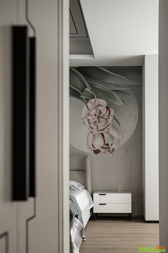 女儿套房别具温婉气息,以优雅淡然的色调作为基底,柔静舒适。别墅设计含苞欲放的花朵图案背景墙平添几分典雅意蕴。