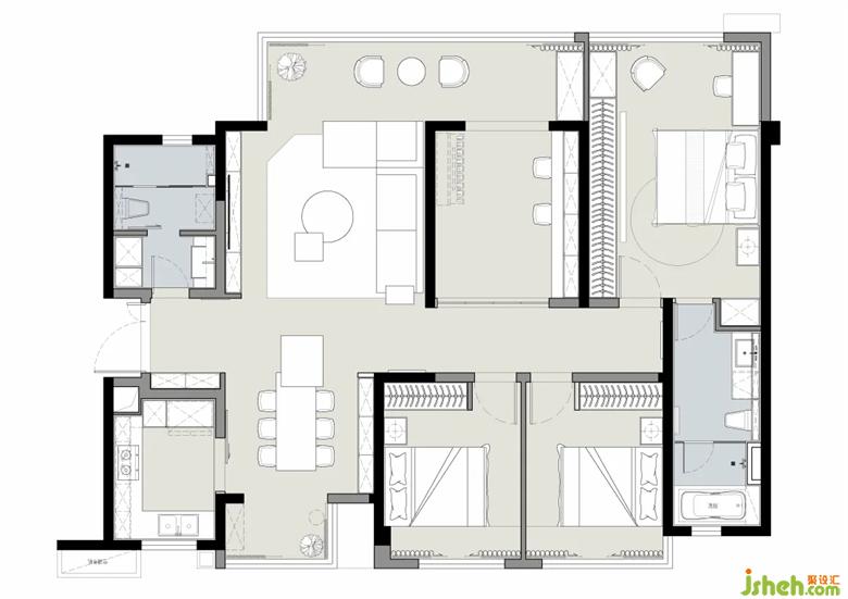 内敛理性的灰色调,和谐而不事张扬,叙说空间优雅的底色,仿若娓娓道来。