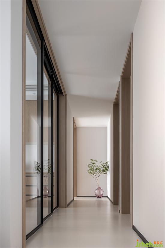 极具视野感的过道,也是空间“呼吸感”的一大体现,点缀瓶盏绿植,生气十足。