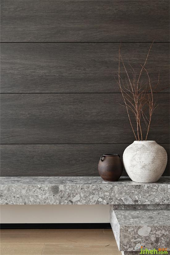 木质的温润烘托出空间的自然质朴氛围,在当下的钢筋水泥世界中,找到属于自己的一份安静之所。倔强的枝丫在瓶中向上伸展,有一种别样的侘寂之美。