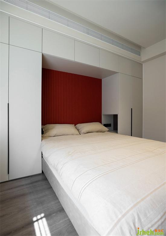 考虑到平日里母亲会过来同住,打造了专门的母亲房,整个房间简洁干净,柜体收纳布局合理。