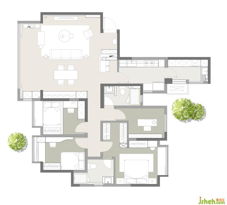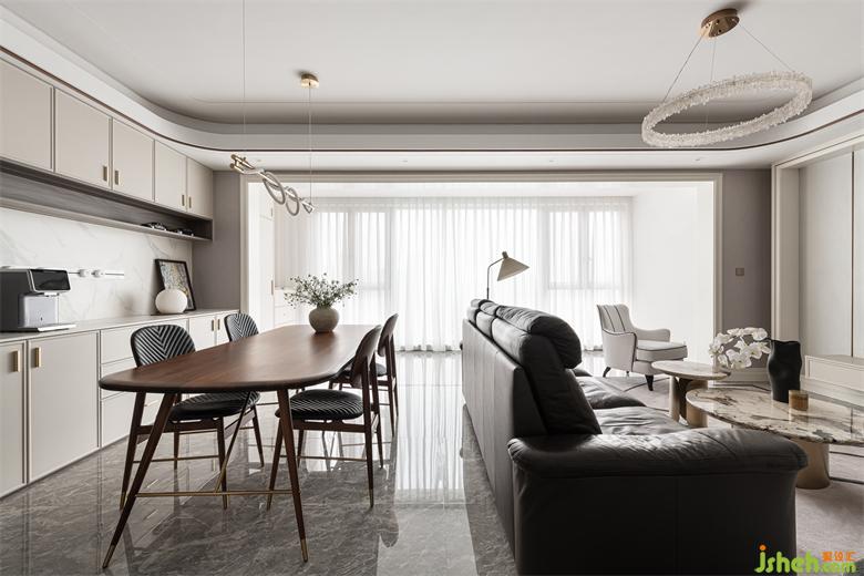 客餐厅相连的布局,开阔明朗,具备良好的通风与采光条件,营造出开放自由的环境。整体空间以中性色调为主,简洁又不失温馨,颇具柔雅气质。