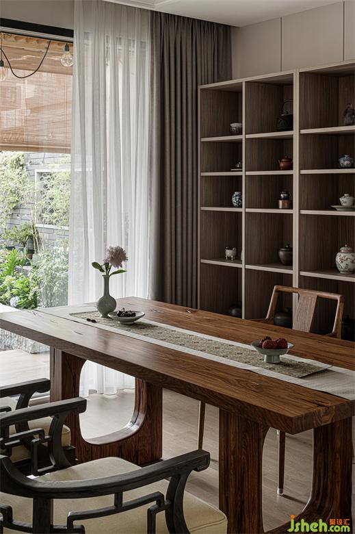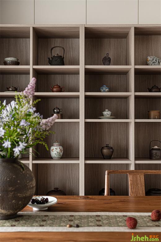 茶室深谙东方美学,木质的自然朴素,瓷器的温润细腻,家装设计都为空间点染着淡淡的禅意。
