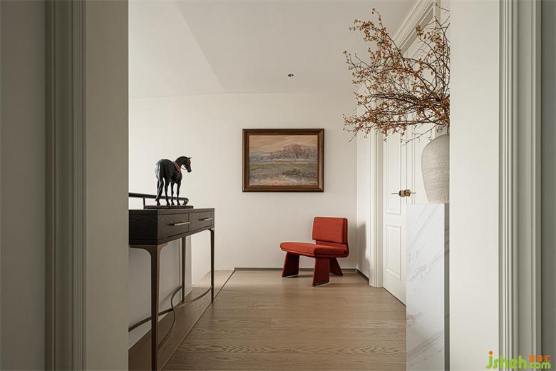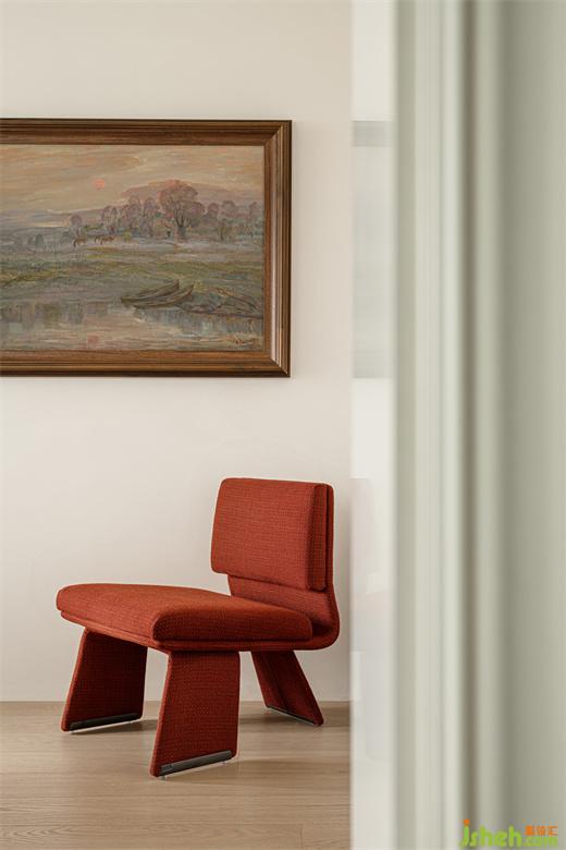 红色单椅凭借独特的姿态,注入一抹亮色的同时,让整个空间变得更加和谐有致。