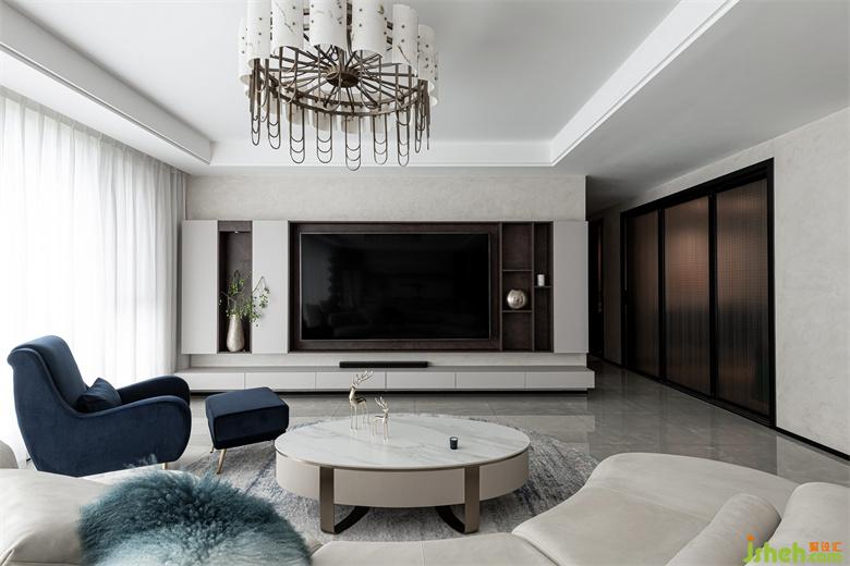 家装设计采用悬浮式电视柜设计,既满足一定的收纳功能,又彰显出电视柜轻盈的体态造型。此外,下方的悬空处,也更方便清洁打扫。