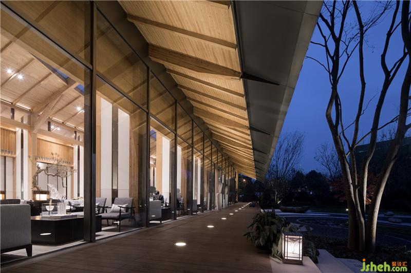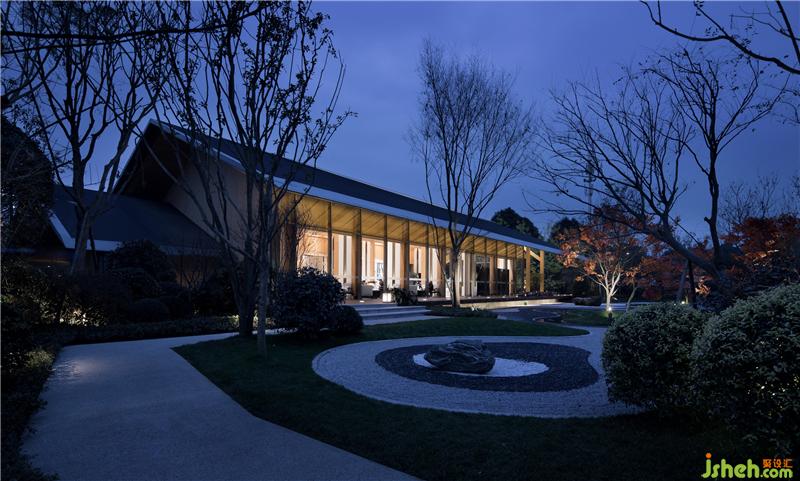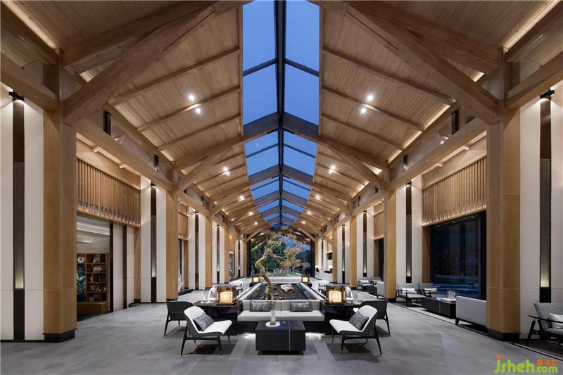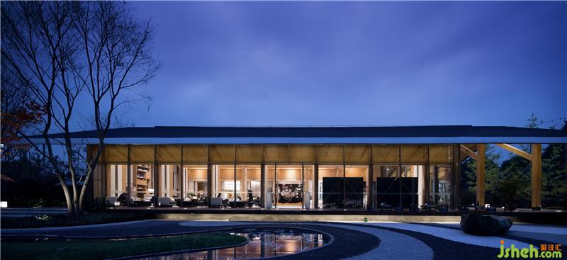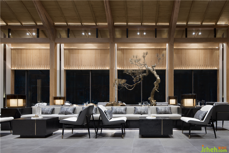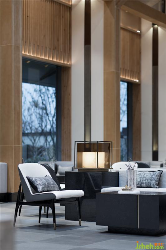 “通过大面积的玻璃幕墙观看室外的景色,比在室外看自然景色有着更深刻的意义。”洽谈区营造了一处轻松、写意的交流氛围,落地窗将山色、树影、轻雾尽收其中,沙发的阵列摆放让空间有条不紊,穿插的艺术装置则呼应了园林景观的山水意境,让身处其间的人们感受到一份宁静的淡雅和沉淀的安然。装修设计
