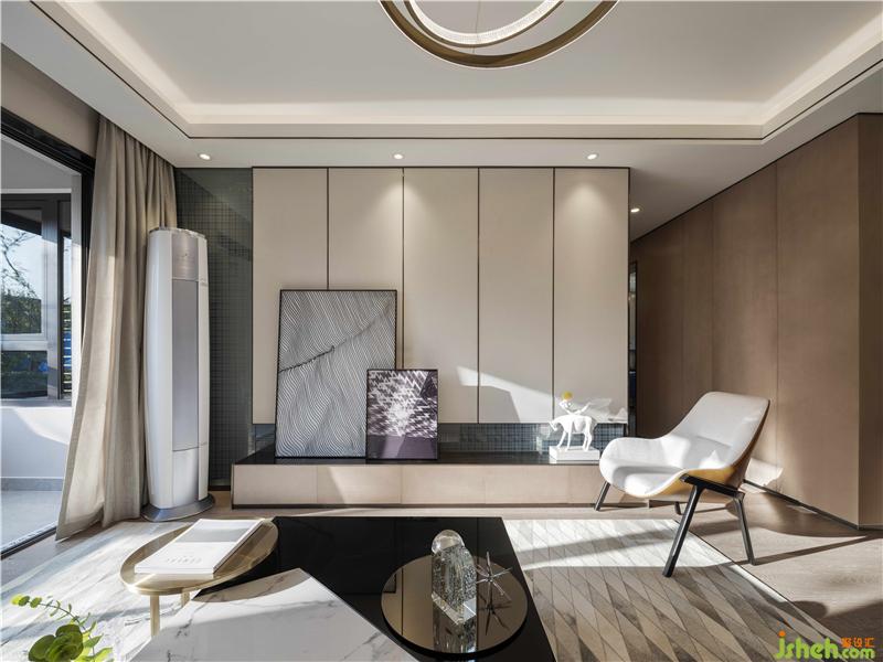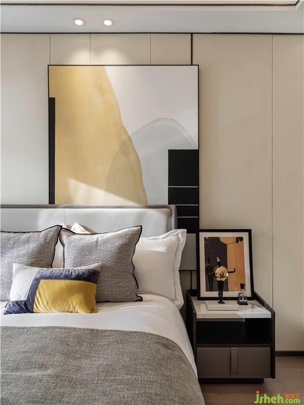 相对于其他空间来说,主卧去繁就简的手笔更为明显,以暖黄色为乐章,灯光为音符,在点、线、面之间联动,来回穿梭,谱写一曲温暖、惬意的情歌。样板房设计