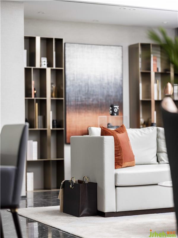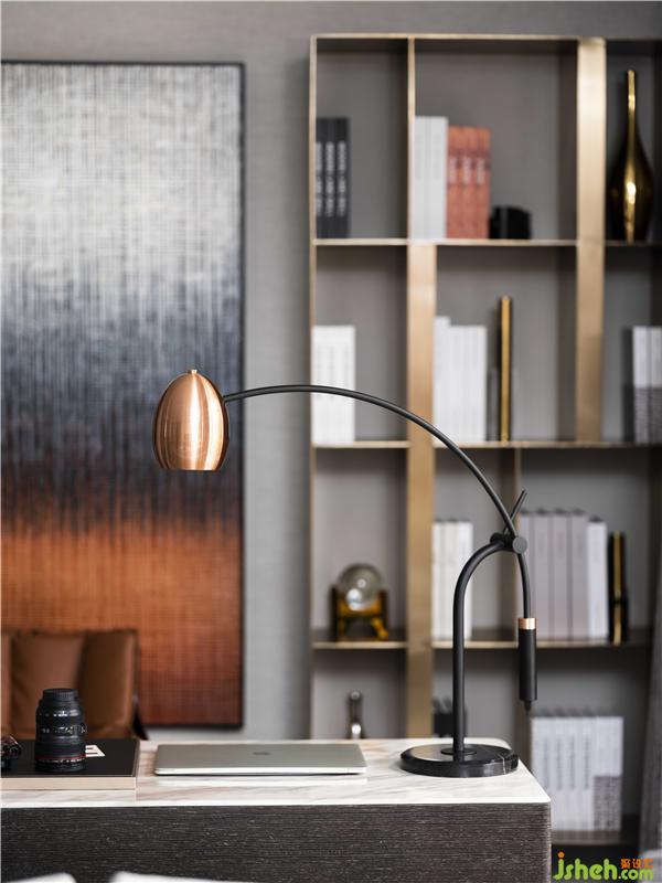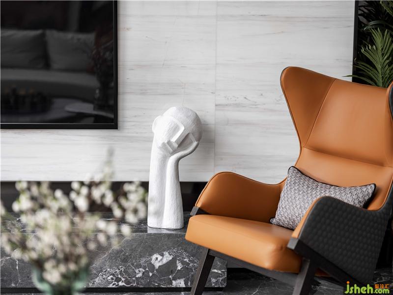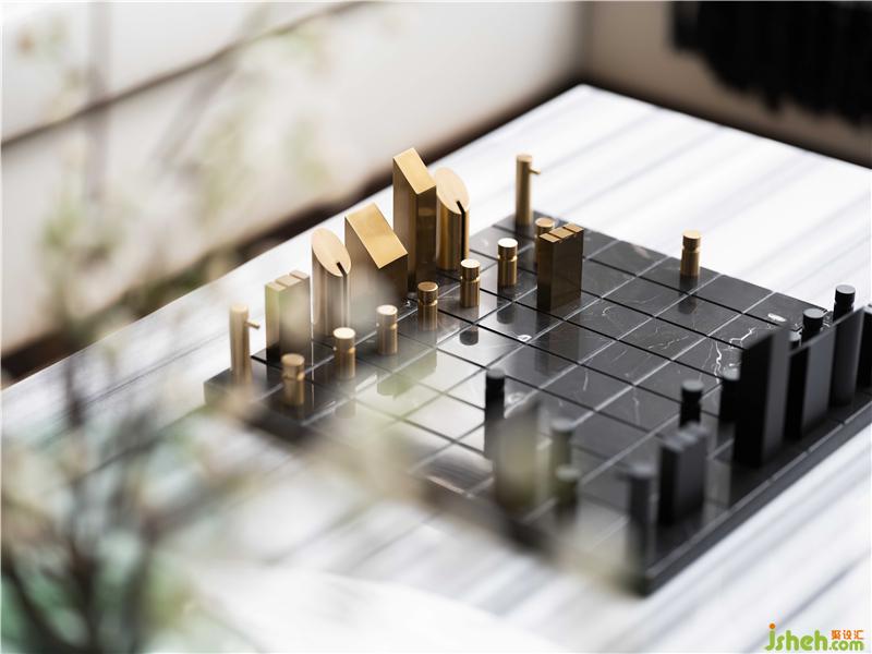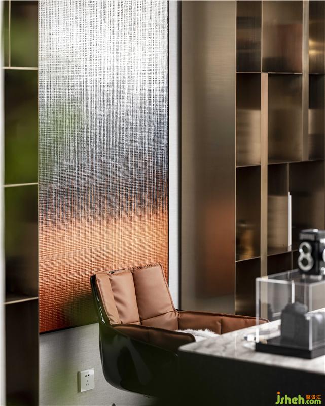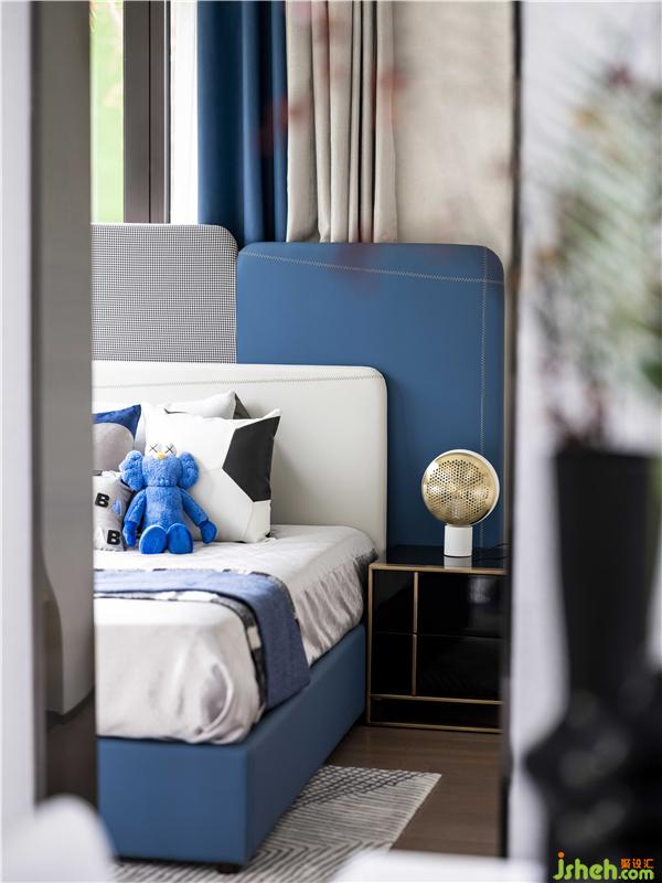 几何不再只是生硬的线条,看似不规则的图案,实则严谨且有秩序的将空间体量简化。在几何元素的抽象表达下,卧室的格调变得理性,并且拥有时尚前卫的气息。样板房设计