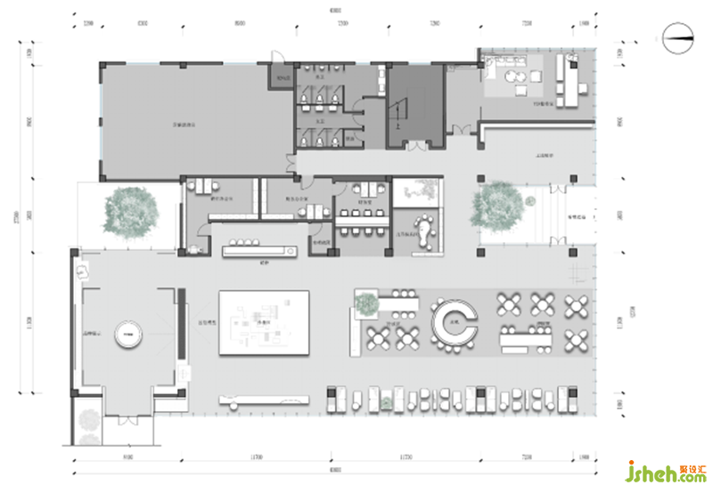 设计师希望通过有序的、内涵的屋顶界定整个销售空间,将其打造成为一个室内外结合的有机整体。