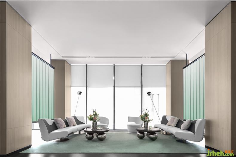 售楼处装修设计空间主体配色为白色、米色,绿色的出现赋予了更多生命力符号。功能区的共享属性,使得人们的相处更加惬意随性。放松的状态下,能感知到更多细微的情绪变化。