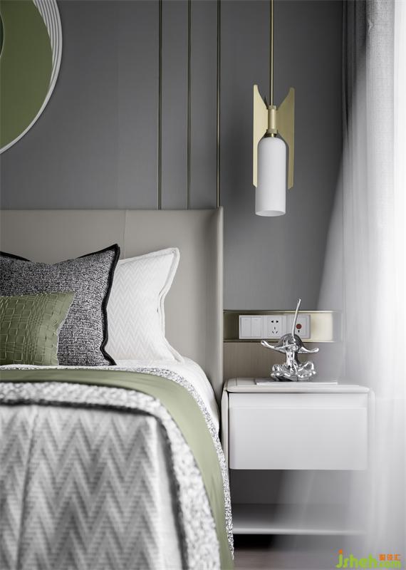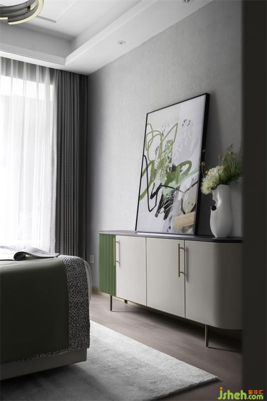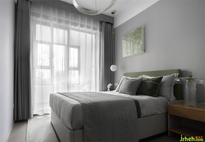 高级灰的睡眠空间,让不同饱和度的绿色跳跃其中。
