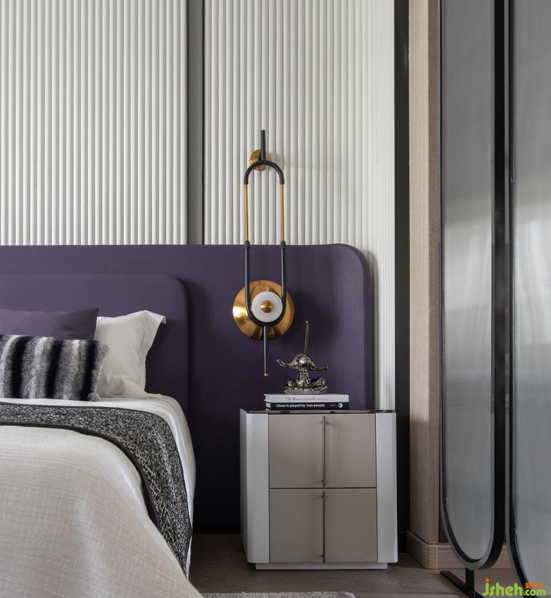主卧在简约基调中使用多元化的材质,折射奢华气质。极具现代感的硬装配合内敛且柔和的软装,高级而不浮夸。