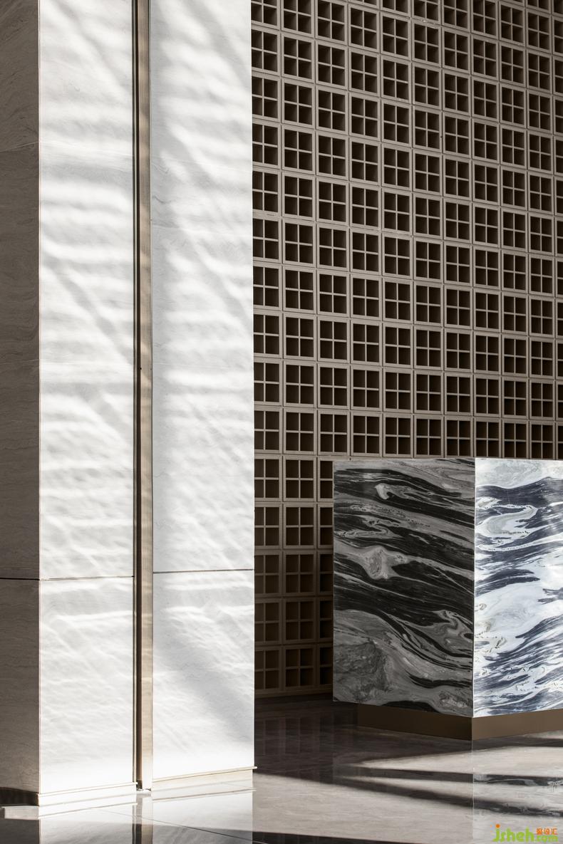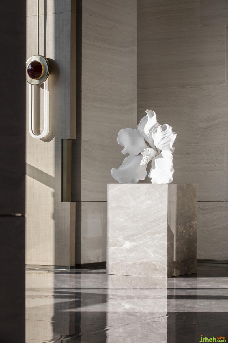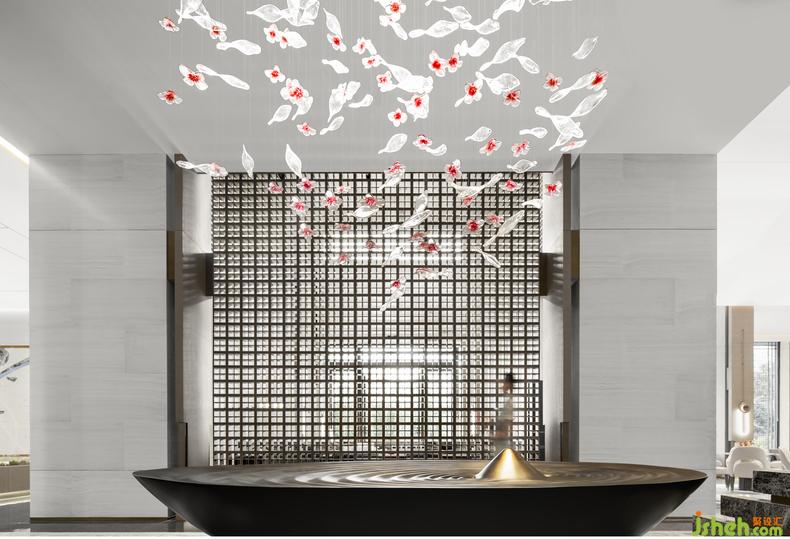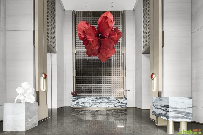 步入前厅,空间线条均衡对称的排布和庄重的建筑色彩,成就着高度的秩序感;装修设计风华旷代的天彭牡丹以迥然相异的现代材料呈现,不禁让人直触内心所向:牡丹开得最盛的时代,何尝不是我们所向往的最好的时代?