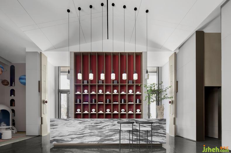 区域借由陈列布局强调中式古典的对称美,同时意在打造纵向延伸空间的层次感,延续了东方的礼序之意。