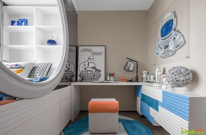 星战主题儿童房给予畅想更多可能,充裕的学习区域为孩子提供自由的探索空间。
