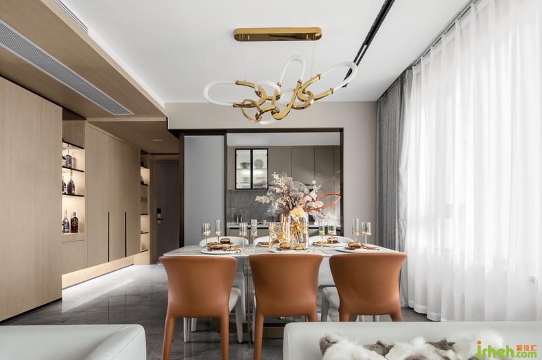 典雅简洁的卡因斯棕配合光影与透明度,构筑起105户型的设计内核。
