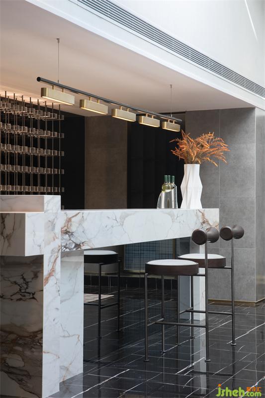 精于内,奢于境,克制的奢华达到品味的极致追求。整个设计理念在这里随处可见,别墅装饰水吧的别致设计,厚重与轻盈交织。墙面极简的设计形式却解锁了空间的延伸,创造了无限视觉和格局感,增加了体验的闲趣。