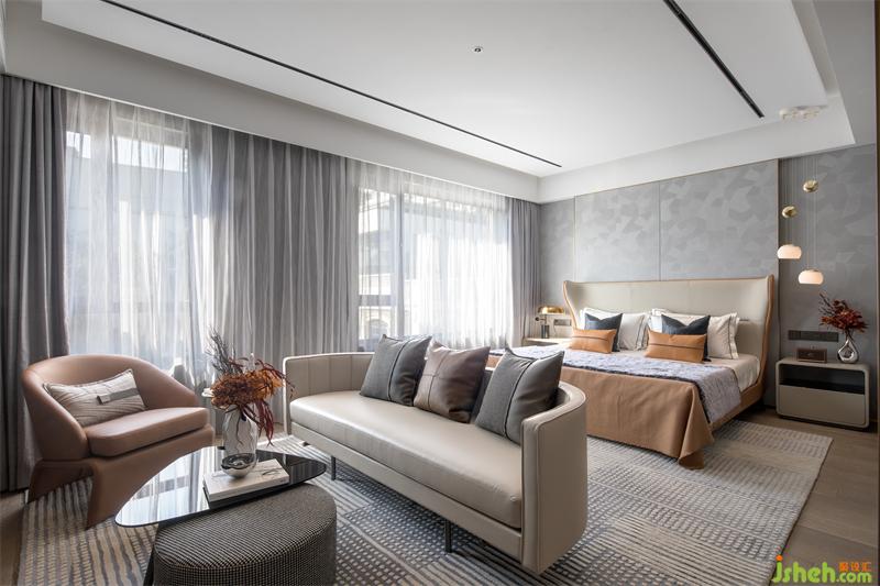 卧室,是家里最舒适的庇护所。主创设计团队延续克制而低调的色彩,别墅装饰构建一个可独处思考的小天地。它不是展示厅,而是一个人个性、经历、品位的包容所在,在疲惫的日常生活中,找寻内心力量,获得片刻安静。
