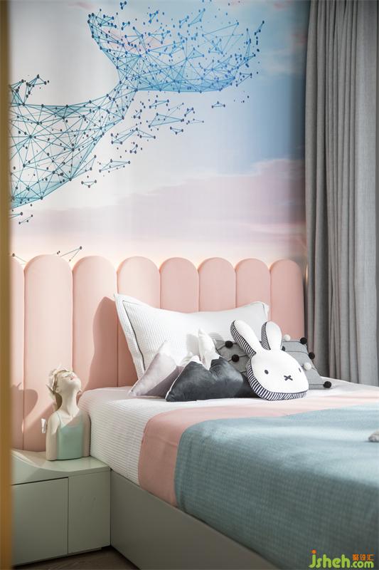 可以发现,女孩房的设计洋溢着海洋气息,一系列元素皆源自于小主人对大海的向往。粉色与蓝色为房间的主色调,为这个充满自由、探索精神的秘密领地注入了天真烂漫。