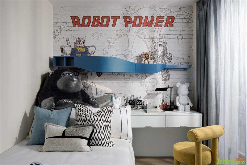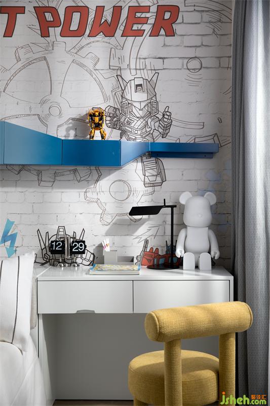 而男孩房则承载了更多对世界的好奇,以变形金刚为主题,富有冲击力的色彩变化充满节奏力量感。别墅装饰红蓝黄三色搭配看似跳脱,却恰好符合小主人追求新鲜的个性。