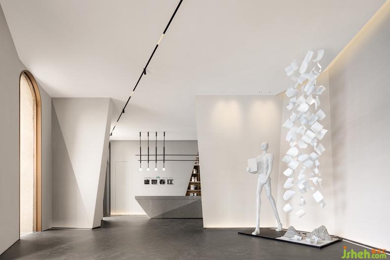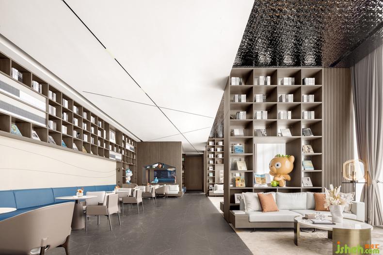 在以人为本的时代语境和视野下,地产界“去售楼处化”的设计概念也应运而生。室内设计师旭辉地产与尚石设计带着对构筑新型城市空间的新思索,共同研发新一代售楼处,南宁·盛世春江售楼处作为一栋独立的永久性建筑,力图突破销售场景的界限与条框,融入文创、咖啡、书吧等丰富元素,打造多元的沉浸式体验空间,为业主提供一个可社交互动、传递体验、探索艺术、会客游玩的多功能化“乐活”社区,让“可持续性设计”更具现实意义。