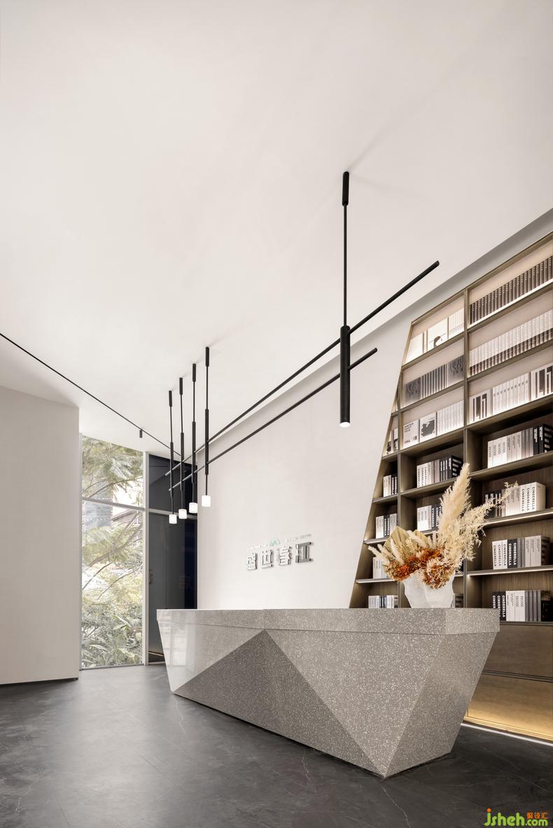 “纳自然之形,建空间之意”,南宁的自然人文充分纳入到设计之中。水磨石接待台与上方的工业现代风灯饰交相辉映,用线条铸就力美表达。透过侧面玻璃,望自由的绿植随风摇曳,自然和光影结于这一角,让城市中的人们再一次放下心防,为这简与雅的共同体留驻。