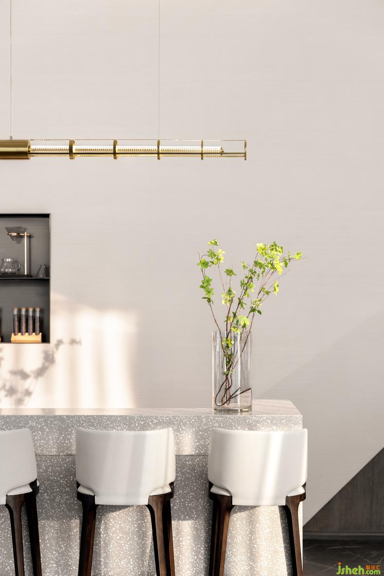 天花加以极具现代感的线条元素与灵动的水波纹形态统筹空间语言,呈现别样的艺术体验,让明净开阔的视觉效果搭建情感共鸣,诉说城市生活的新风尚。
