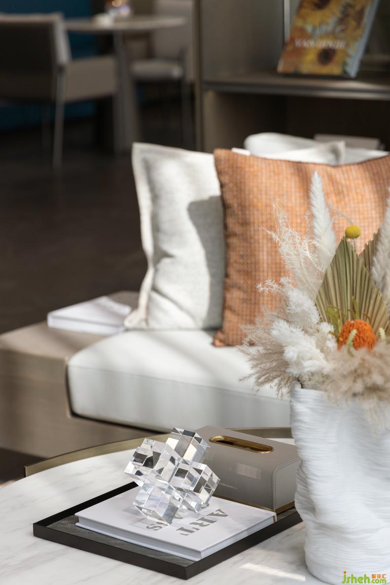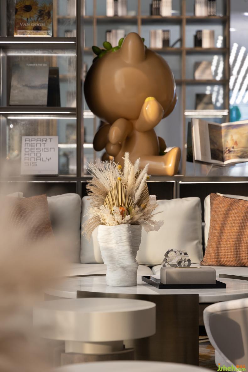 柔和光影点缀诗意的休憩角落,精致的干花花艺与憨态可掬的小熊玩偶不仅让陈设更具美感,更是呼应整体空间的温馨氛围。形成微妙的私人场域感,在无形中体会到家的细节打造。
