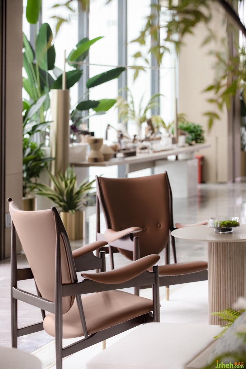 SUNS尚石设计干净华贵的皮革与之相融,在绿意盎然的基调中注入摩登元素,更贴近现代艺术品味。