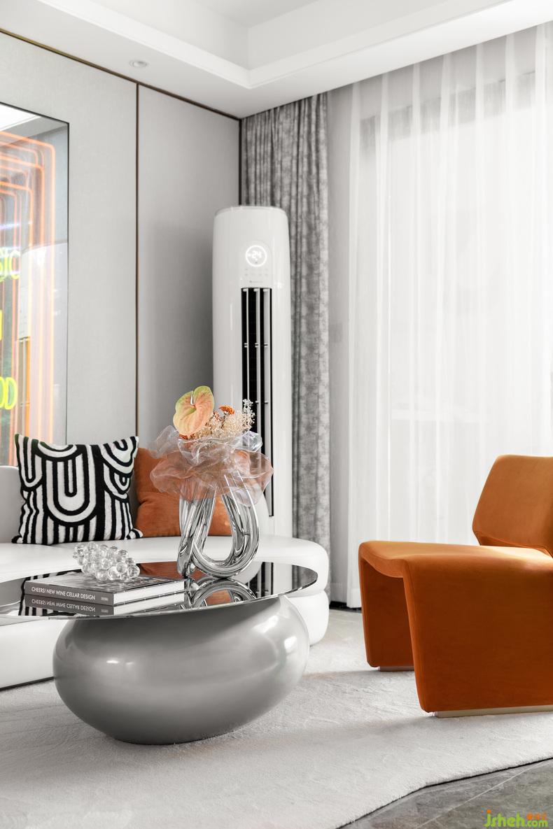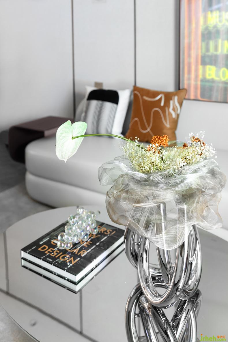 茶几本身就可以是件艺术品,简单几何形状、同样的不锈钢、不同工艺处理,样板房设计再加一张质感皮革沙发,即可与朋友畅聊工业设计。