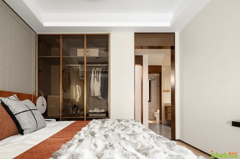 现代光面玻璃的艺术感与卧室相互融合,梦里继续安放兴趣的休憩。