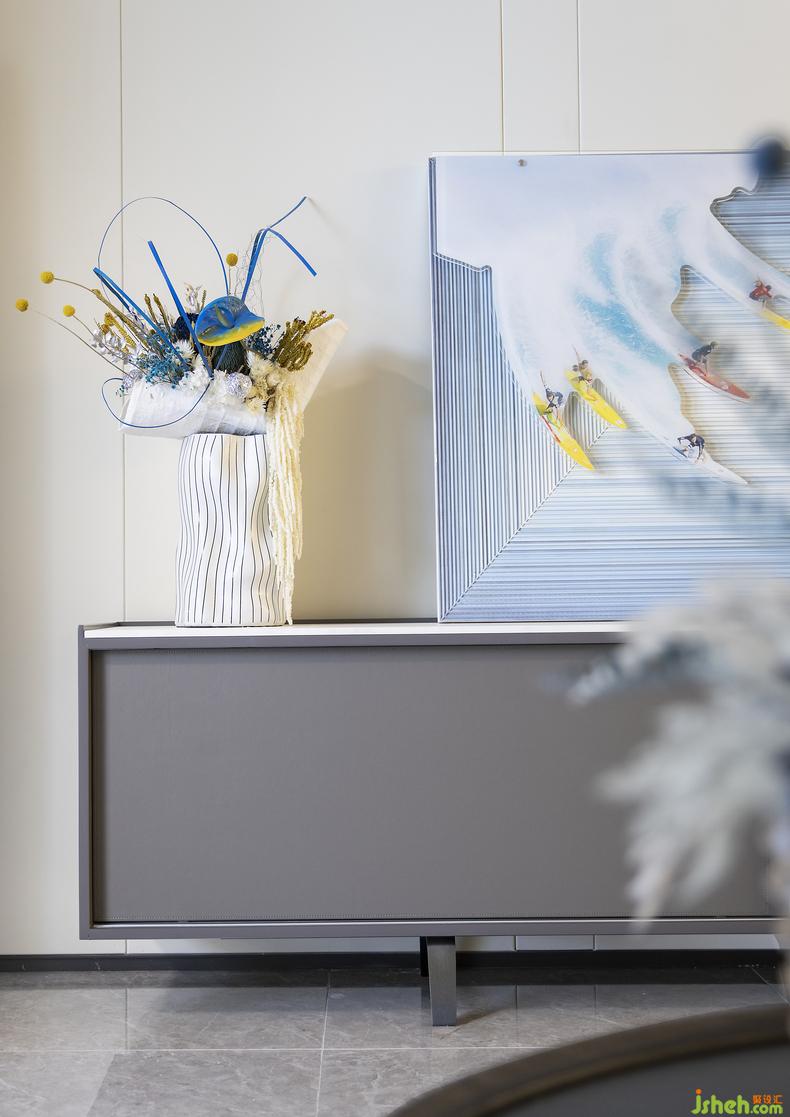 客厅墙的挂画亦是海浪的抽象化表达,悉数回忆终筑美好愿景。