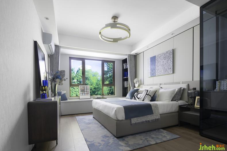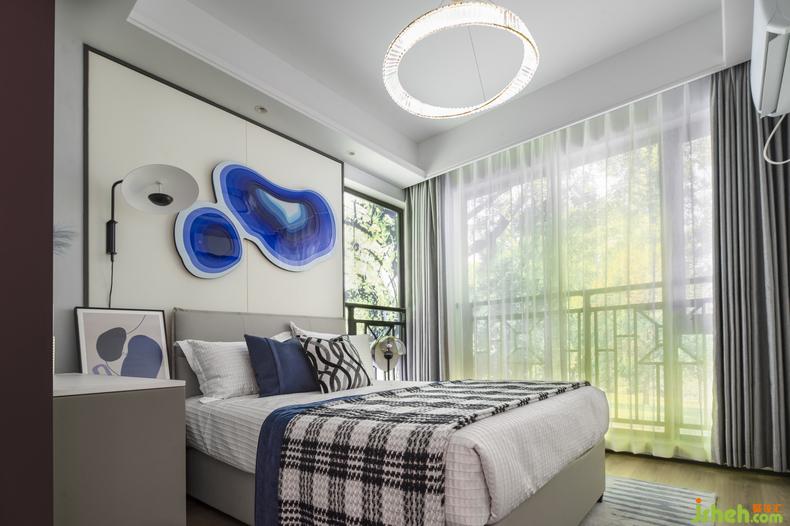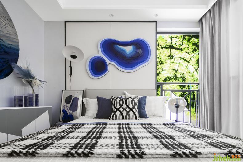 次卧整体色调呼应海洋旋涡的艺术挂画,注入一抹沁入人心的平静。