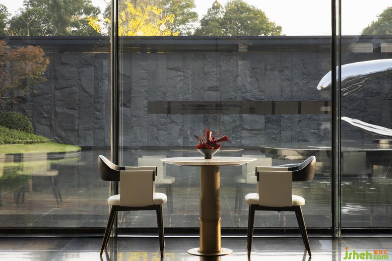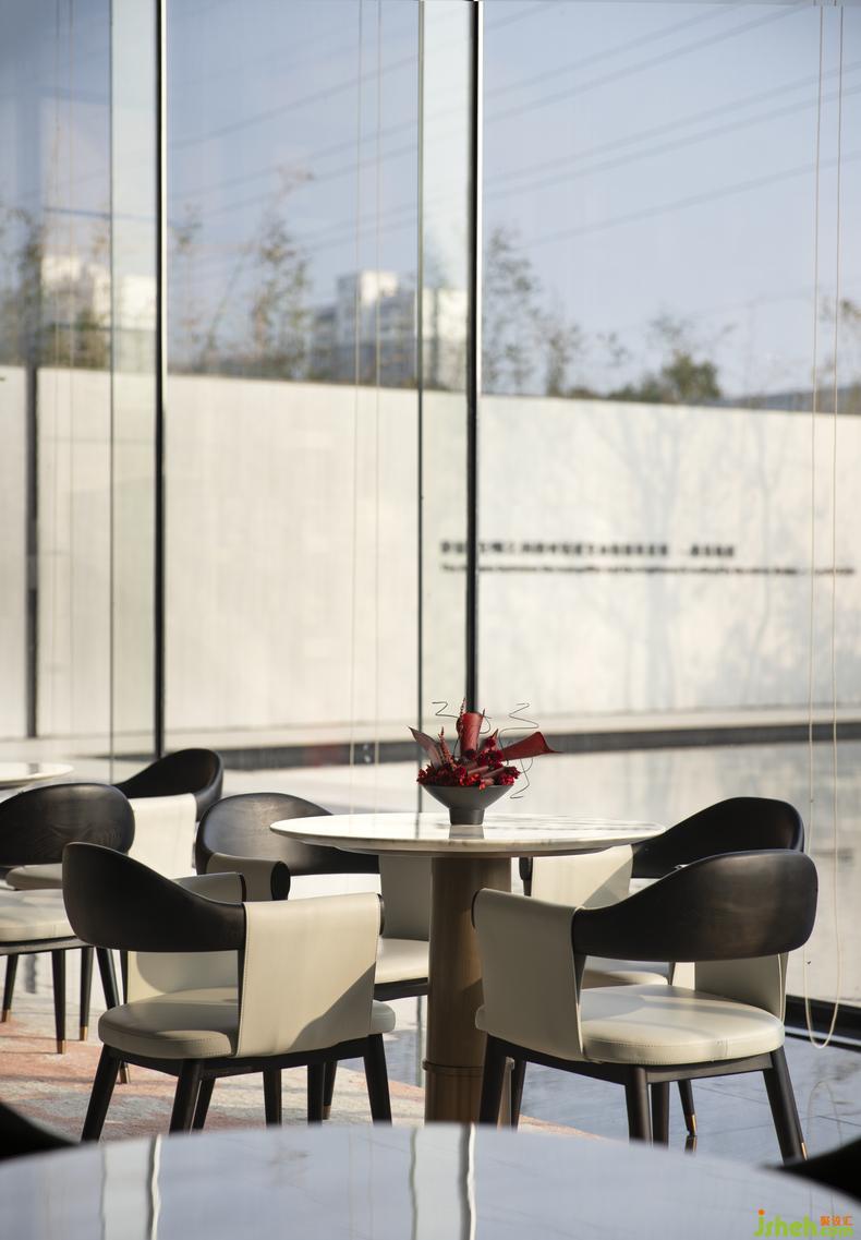 “纳自然之形,建空间之意”是极其重要的东方美学思想。洽谈区充分利用自然,售楼处设计用大面积的落地玻璃窗将自然和光影结于一庭,室外之景纳入眼帘。窗外的庭院与树和室内沙盘区相映成趣,东方古韵与现代展望融汇一体,传递着美好人居的理念。