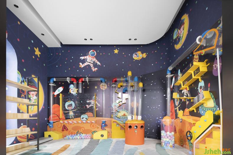 儿童区的打造极富想象力,色彩丰富的梦幻星空、自在遨游的小小宇航员、售楼处设计多样别致的游乐设施,轻而易举点燃孩子们与空间的情感互动,探索着这一方新奇世界。