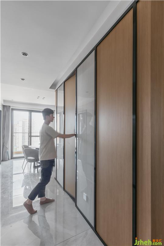 改造后,不仅把过道变的更宽,且隐形门的私宅设计,让整个立面更加的简洁。