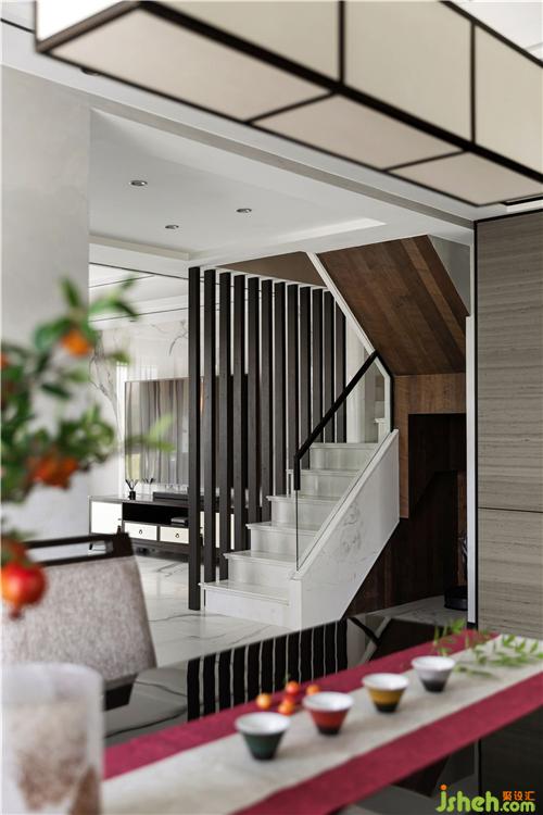 很喜欢这张照片,因为楼梯的大理石白色和胡桃木屏风的搭配看起来让人舒心南京装修设计。楼梯下面是男主打算放鱼缸养鱼的
