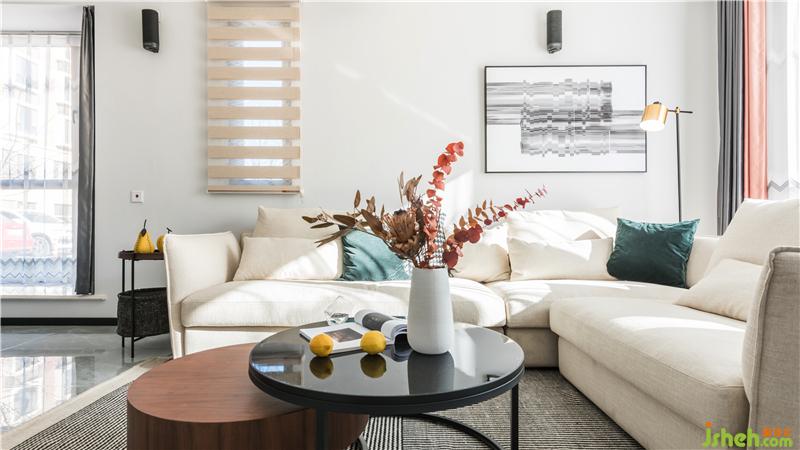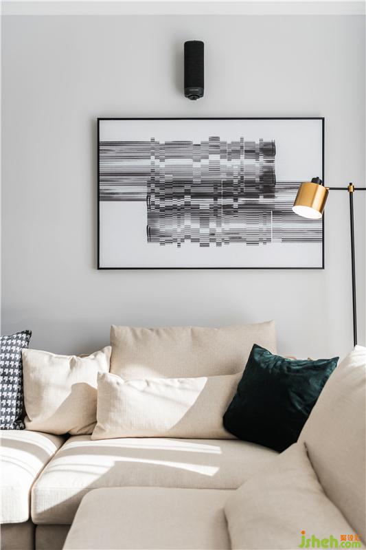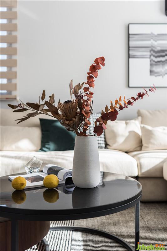 明亮的自然光线让人享受,透过百叶帘引景入室,和室内柔和简约的气质十分融洽,沙发休闲区软装上十分考究,运用适合的材质、尺寸、色调和纹理,空间气质一下子有了明显的变化,在满足使用功能的情况下,家具的品质感和格调也是需要去考量的。