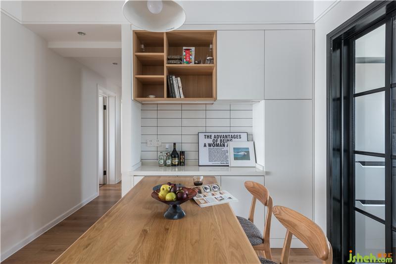 餐边柜和餐桌相结合,最上面一组开放格作为书架,看得见看不见的地方都暗藏收纳与惊喜。