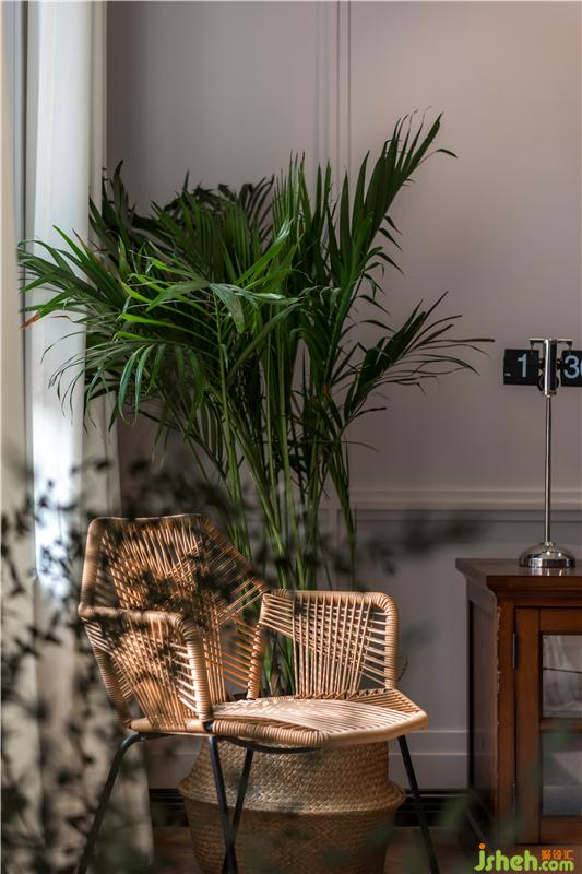 沙发后是一个大大的工作台,平时家里小孩子如果要做手工写作业,妈妈都可以陪着她在这个地方完成,椅子也不是单人的,而是选用了两人位,一家三口都可以同时在这里做手工,非常融洽。整个空间的光线都非常充足,最好的位置都留给了公共活动区,小熊猫她可以在这里随意玩耍。