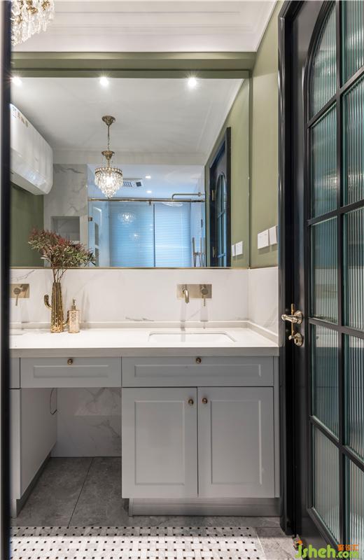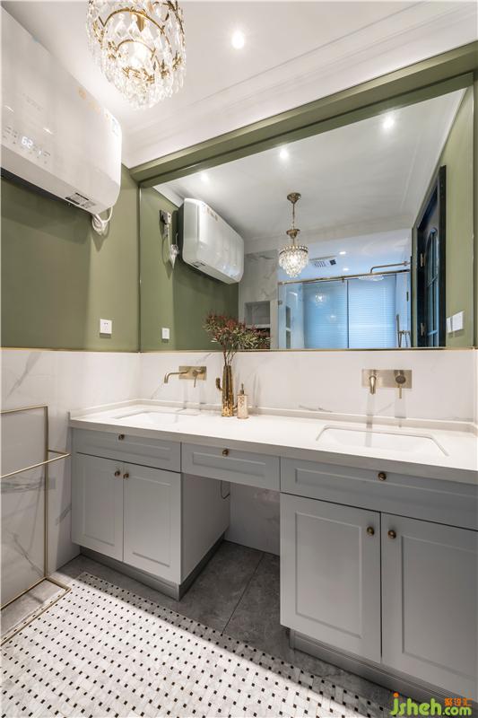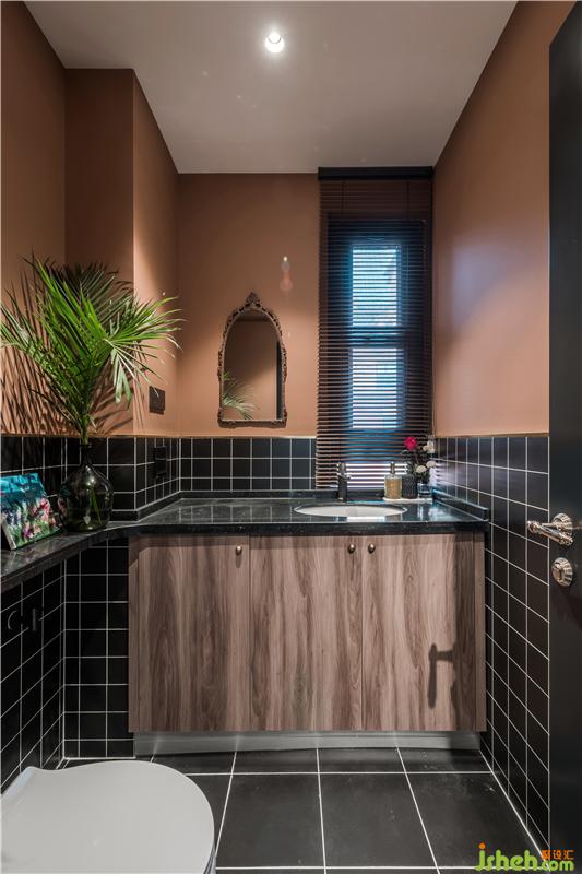 洗手间是一个比较私密的空间,天津别墅设计除了考虑风格,我们更多的想要达到一种空间氛围,安静,古典,所以选用了小黑砖搭配复古橘色,这是一个很妙的颜色,复古又有趣。