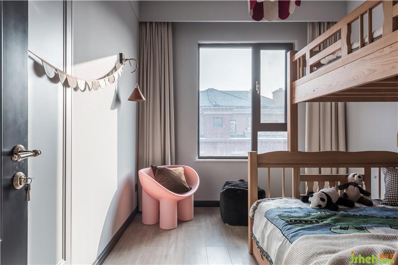 这个房间是给家里的小女孩,小熊猫的房间,床是她以前的床,在新的房间里也丝毫不违和,在设计之初业主就有和我们沟通,以前的旧家具如果可能的话希望能够融合在新的家里。有些物品,经过了时间的流逝,更多的也承载了使用者的记忆,变成了一个很重要的纪念品。