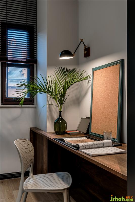 因为男业主工作的关系,我们还在二楼也同样设计了一间书房,天津别墅设计面积十分有限但还是放下了一张长桌和移动书架,甚至还有一架跑步机。小书房的诀窍大概是先装满,越用越大吧~