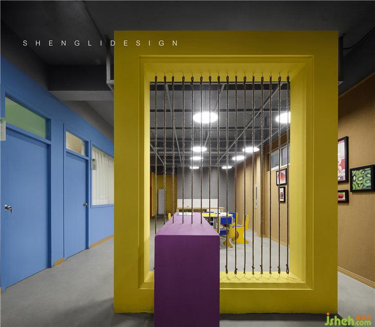 整个美术室以明快、清新、活泼的整体风格设计,迎合了少年儿童的心理,满足孩子天性活泼的活动需求,营造轻松舒适的绘画环境,桌椅和周围的环境都充满了童趣。