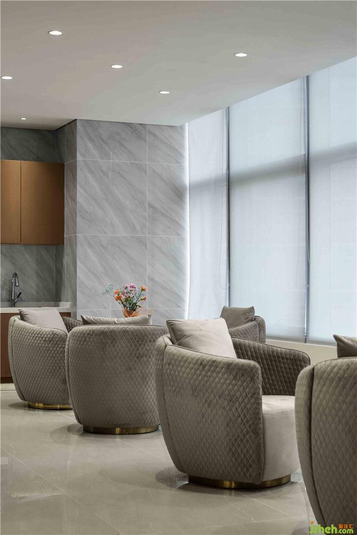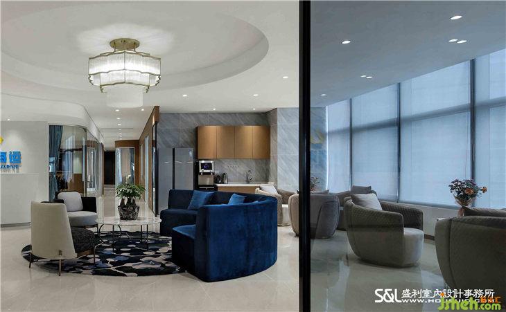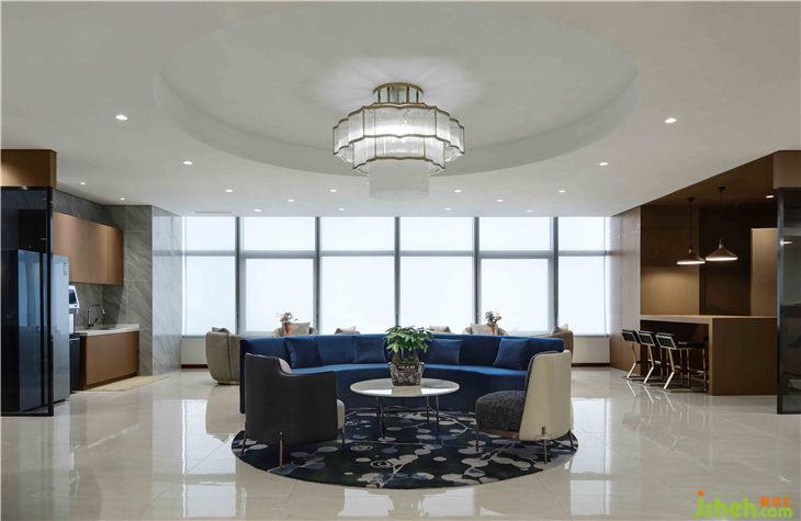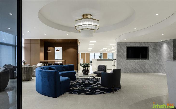 大厅的弧形沙发,圆形吊顶以及顶面的户型曲线,令用户在进入办公室的瞬间便能感到一种温暖友好的氛围。