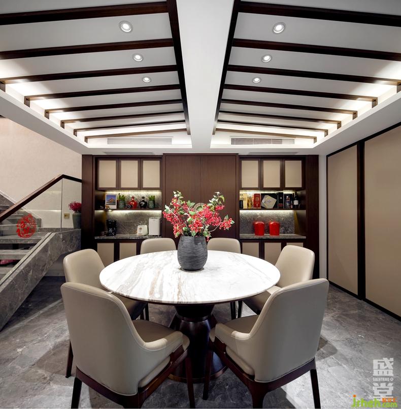 顶面形式使空间更显中式大宅气质,诉说着主人细致儒雅的个性。