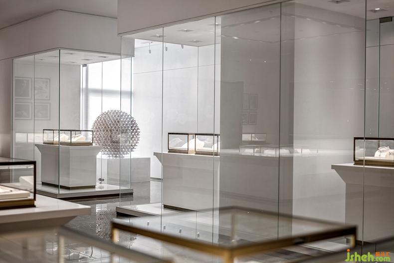 新品+功勋产品展厅,据说这里的每个功勋产品都是销售冠军,很多单件销售超10万+的明星产品,偏现代博物馆的展示方式,既体现企业经营的温度,也为顾客挑选经典款式节约时间。