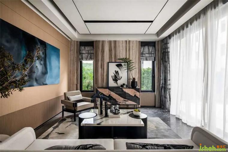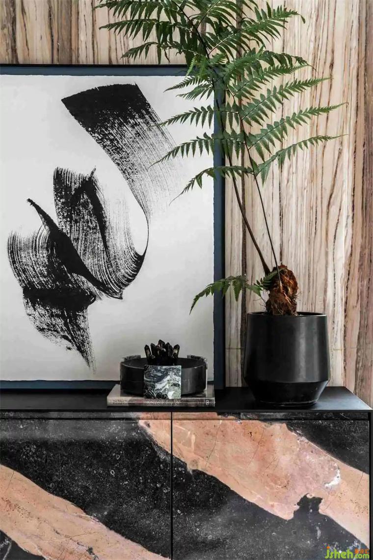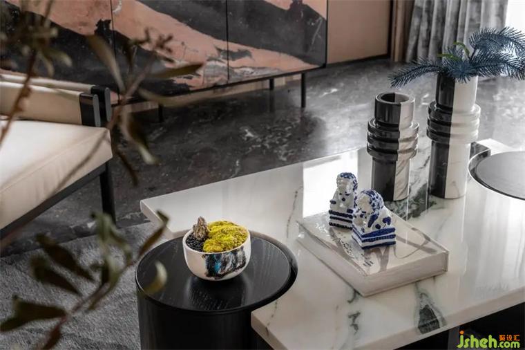 以皮革沙发、窗帘为画布,以大理石桌面为画布,样板房设计以光洁地面与舒适地毯为画布,以各类陶瓷为画布,以实际画布为画布,形状各异、材质不尽相同,泼墨、洒墨、点墨……或轻或重,肆意而游刃有余。