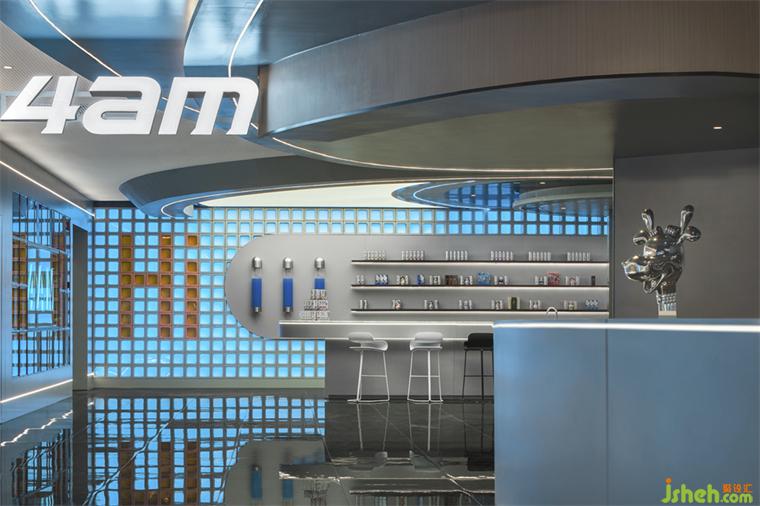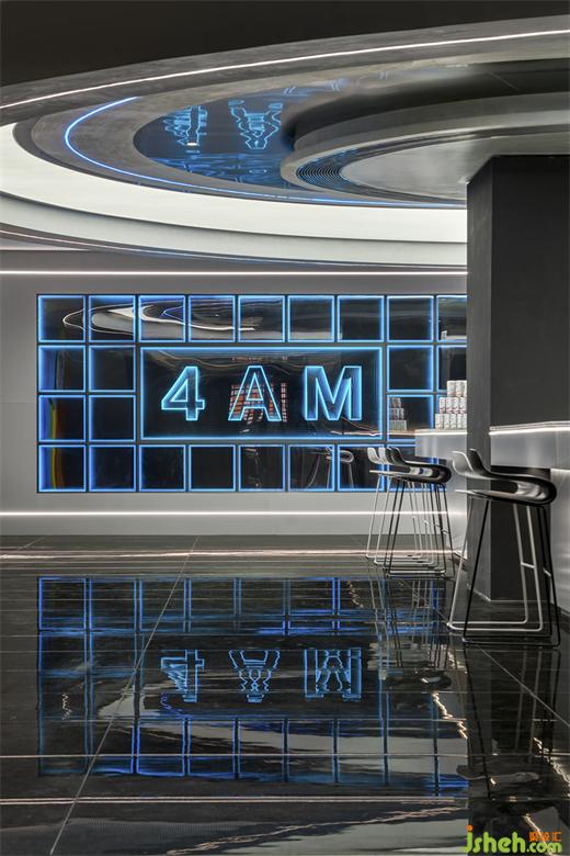 如同体验一场极光降临,被脉冲银质感的不锈钢金属包裹,又被极速的电光蓝分割成多重宇宙。电竞俱乐部设计银灰色与蓝色相互牵绊,重构科幻感十足的未来体验。